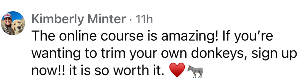 I’ll show you how to understand your donkey’s hooves, health, and behavior on a level that creates connection, trust, comfort, and real wellbeing.